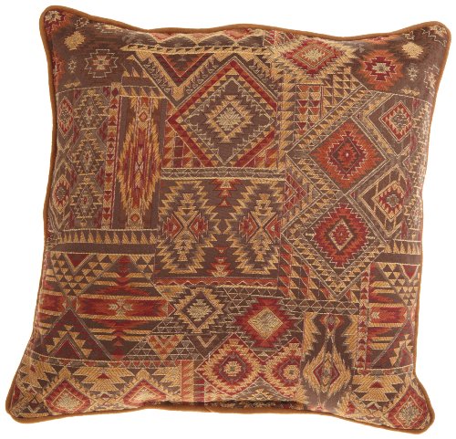 Croscill's "Yosemite" ensemble draws inspiration from nature's rustic, natural views, featuring dynamic patterns through intricate stitching techniques. The "Yosemite" decorative pillows feature leather accents, unique borders, and stylized geometric patterns, in deep naturalistic tones. The square pillow features the allover Aztec jacquard print that is seen on the face of the comforter, and reverses to a small diamond design. For added texture, all four sides of the pillow are trimmed with a 1/4-inch suede piping. The square pillow measures 18-inch wide by 18-inch tall and has 100-percent virgin polyester fiberfill. Coordinating "Yosemite" comforter set and window coverings are available.
